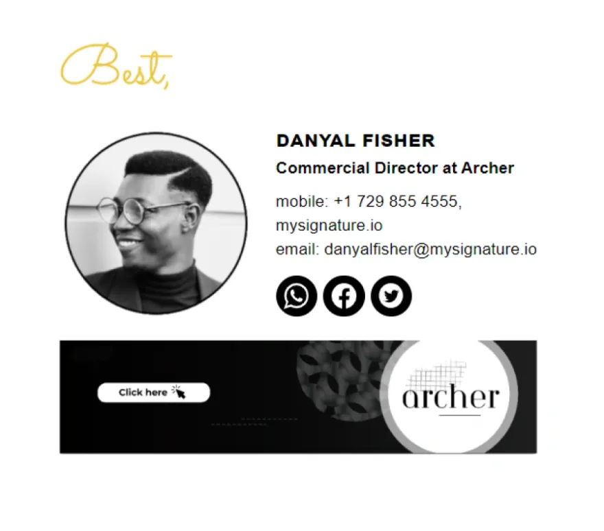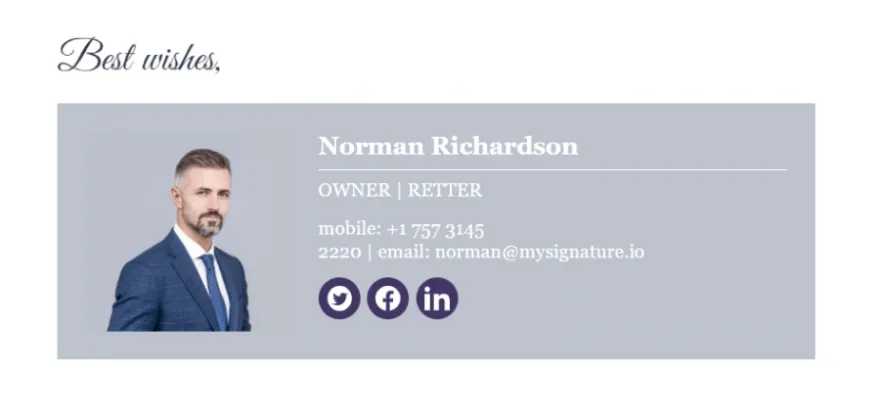 Com o uso crescente de smartphones, é fundamental criar assinaturas de e-mail para proprietários de pequenas empresas que sejam exibidas corretamente nas telas móveis. Também é necessário testá-las em diferentes clientes de e-mail e ajustar a formatação, se necessário, para garantir uma aparência consistente e profissional. Ao utilizar uma solução confiável de assinatura de e-mail como MySignature, você pode criar com confiança uma assinatura profissional e visualmente atraente que transmite de forma consistente a mensagem da sua marca, independentemente do dispositivo ou da plataforma de e-mail do destinatário. A seguir, mostraremos alguns ótimos exemplos de assinaturas de e-mail de proprietários de empresas.
