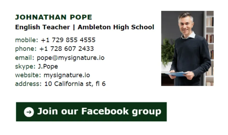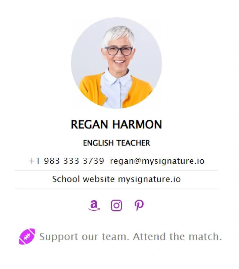 Se você leciona no ensino médio, a MySignature também oferece uma variedade de opções de assinaturas de e-mail para professores. Confira esta lista completa com as melhores assinaturas de e-mail para professores que trabalham no ensino médio.
